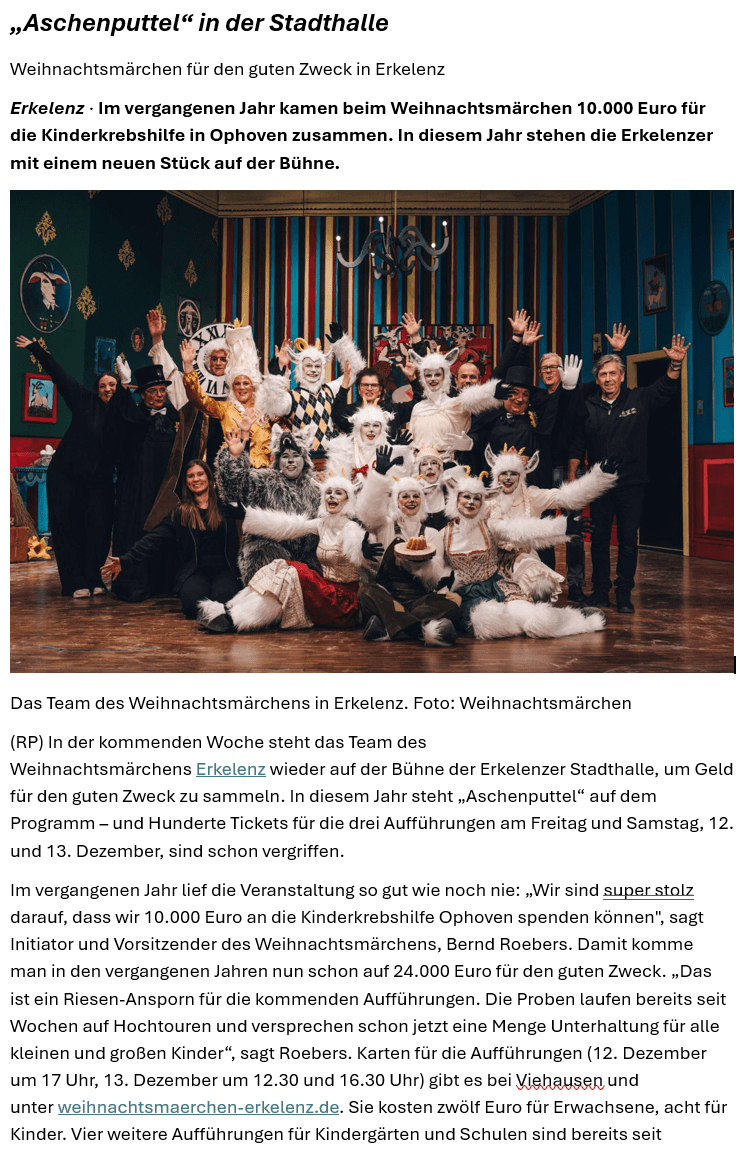 Kostüme: Sabrina Amels (Werbequeen) mit Unterstützung von Barbara Symanski und Claudia Buscher